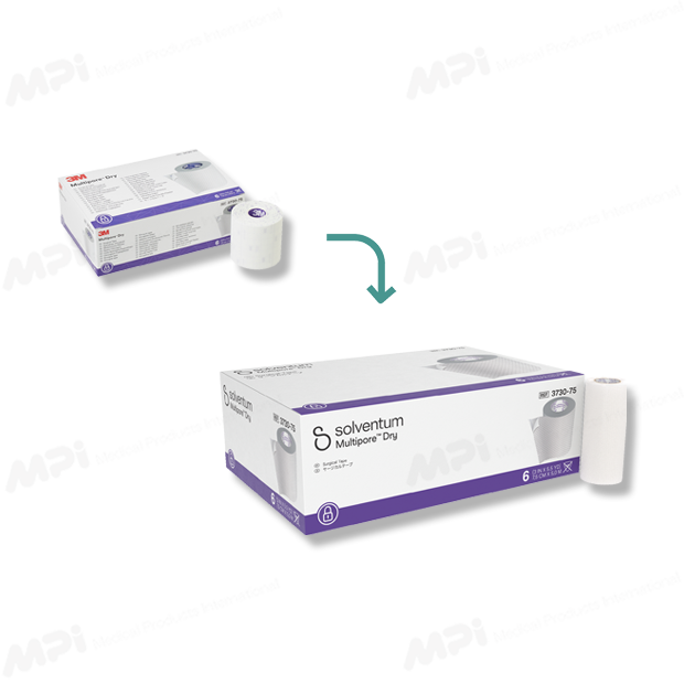 切替後の製品名は、「ソルベンタム マルチポア ドライサージカルテープ」になります。